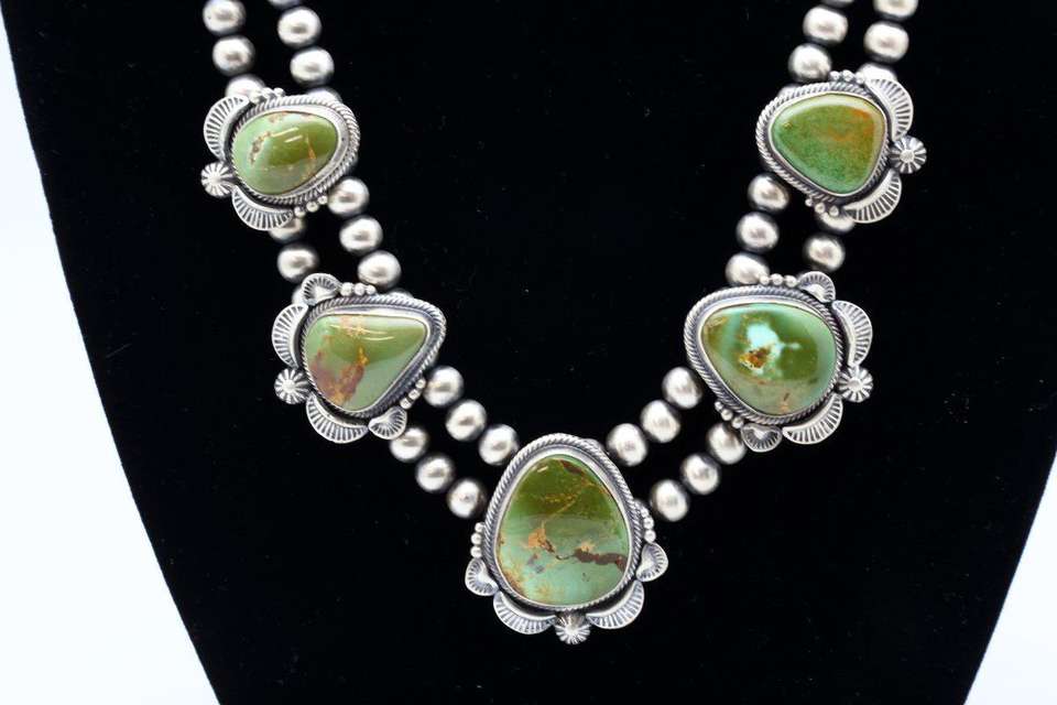 ชุดต่างหูสร้อยคอหินสีเทอร์ควอยส์รูปภูเขานาวาโฮ