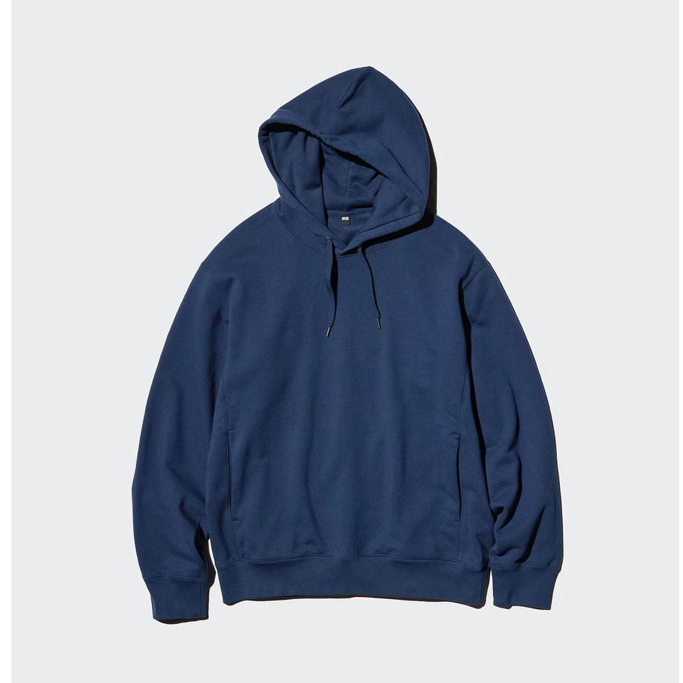เสื้อมีฮู้ดพิมพ์ลายตัวอักษรสีน้ำเงินเข้มเสื้อสเวตเตอร์มีฮู้ดกระเป๋าจิงโจ้มีเชือกผูกแบบลำลองมีตราสินค้าส่วนตัวฉลากแบบปกติพอดีกับคอ