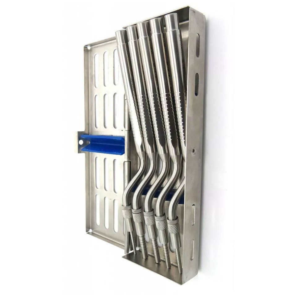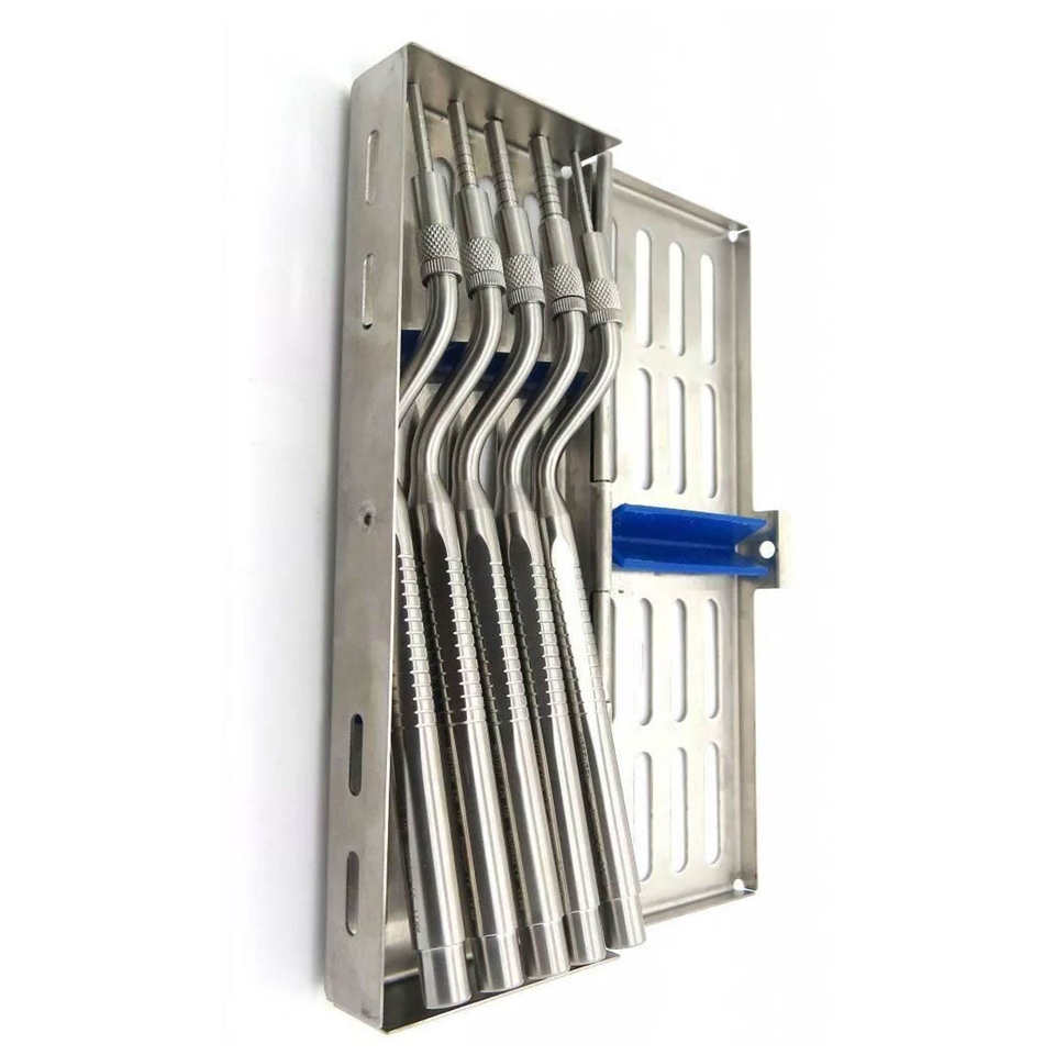 ชุดเครื่องมือผ่าตัดสะดือ 5 ชิ้น สำหรับยกไซนัส โอสเตโอโทม แบบแมนนวล ทำจากสแตนเลสสตีล ปลายโค้งเว้า พร้อมกล่องเก็บ ได้รับมาตรฐาน CE