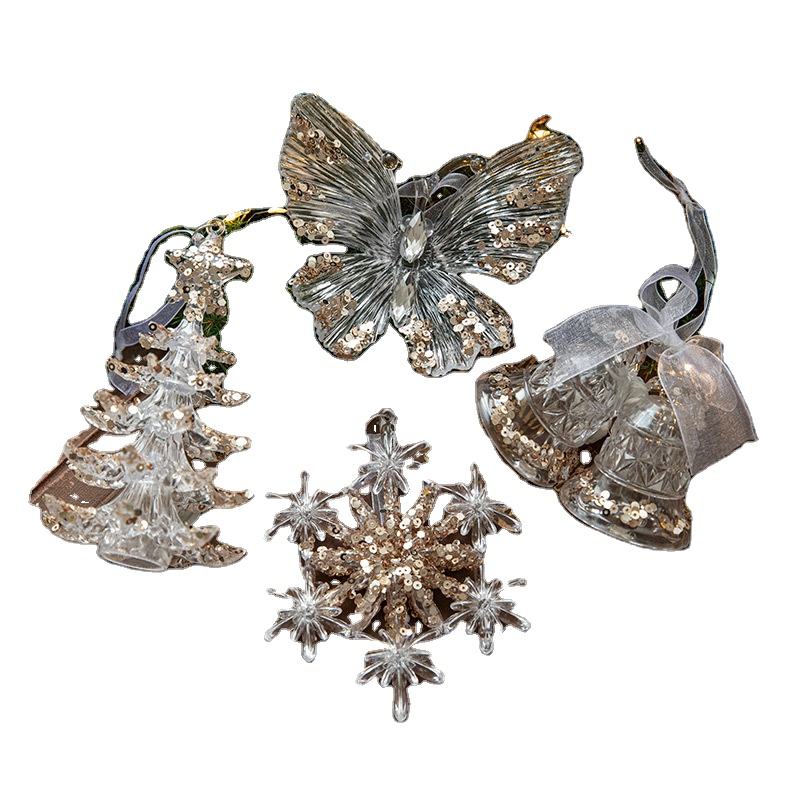 ของตกแต่งคริสต์มาส ของประดับแขวนต้นคริสต์มาส รูปเกล็ดหิมะ พลาสติกใส หลายขนาด