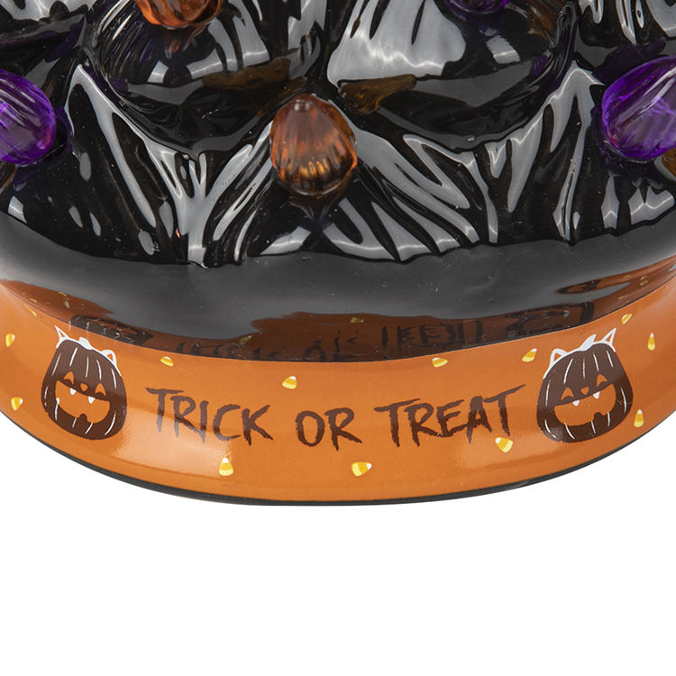 Navidad ต้นคริสต์มาสเซรามิกฮาโลวีนพร้อมไฟ LED สีดำพร้อมฟักทองด้านบนสำหรับตกแต่งโต๊ะ arbol de Navidad