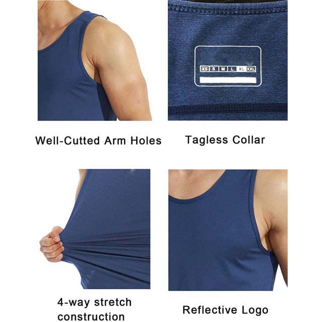 เสื้อกล้ามออกกำลังกายสีน้ำเงินเข้มของผู้ชายเสื้อกล้ามคอตตอนระบายอากาศได้ดีดีไซน์คอกลมแขนกุดสำหรับฤดูร้อน