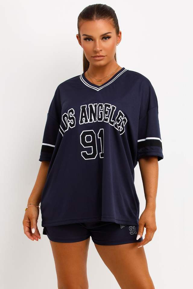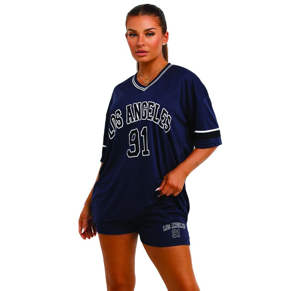 เสื้อฟุตบอลอเมริกันสีกรมท่าเสื้อสเวตเตอร์ไซส์ใหญ่พิเศษพิมพ์ลายตัวอักษร