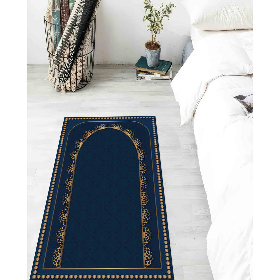 พรมละหมาดสีน้ำเงินกรมท่า: พรมสำหรับการละหมาดที่ซักด้วยเครื่องได้ พร้อมพรมขนนุ่ม