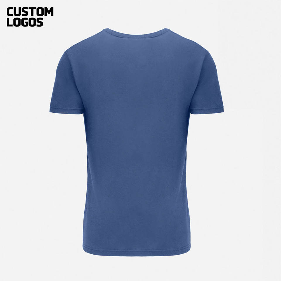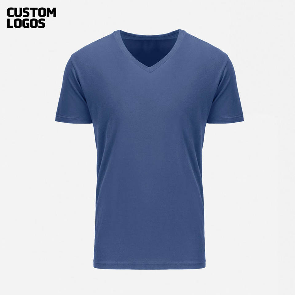 เสื้อยืดแขนสั้นผ้าคอตตอนคอวีสำหรับผู้ชายสีกรมท่า