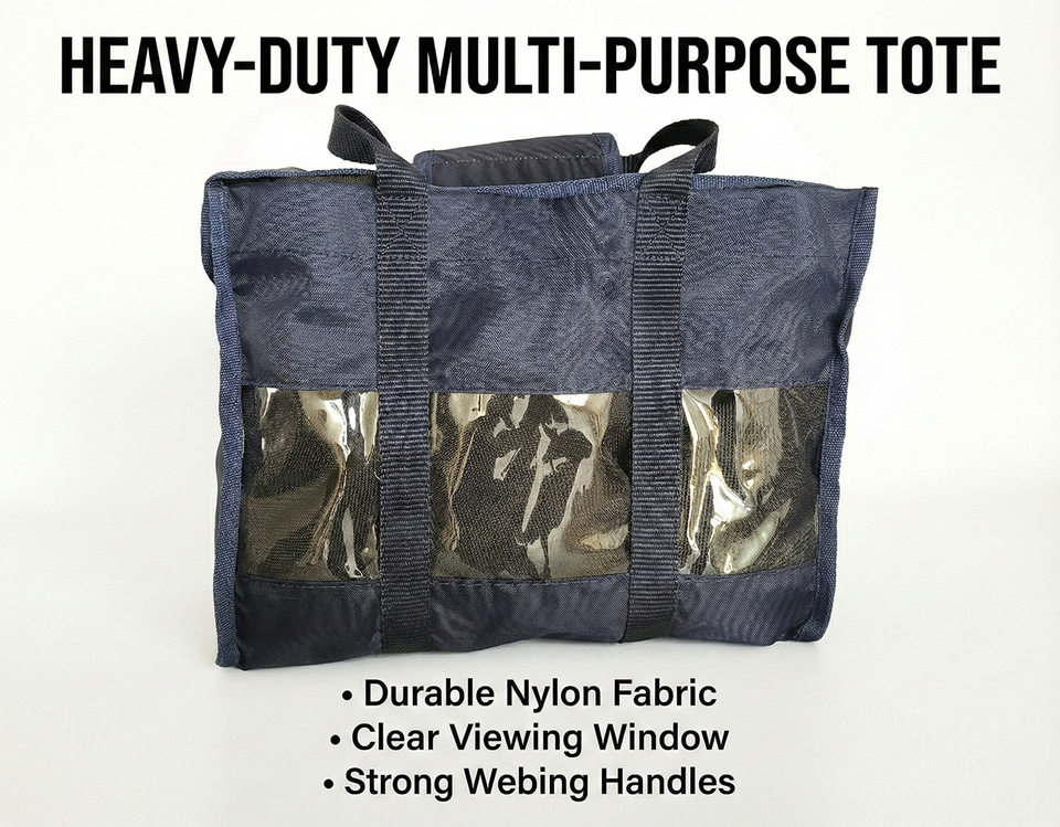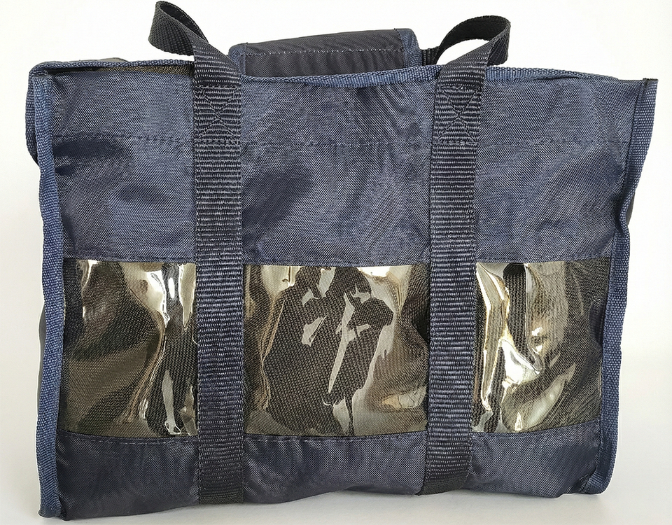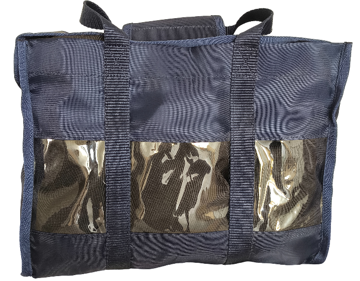กระเป๋าใส่อุปกรณ์ขี่ม้าสีน้ำเงินกรมท่าแบบคลาสสิก ทนทาน มีซิป ช่องใสแบบโปร่งใส พกพาสะดวก สำหรับขี่ม้าและใช้ในคอกม้า