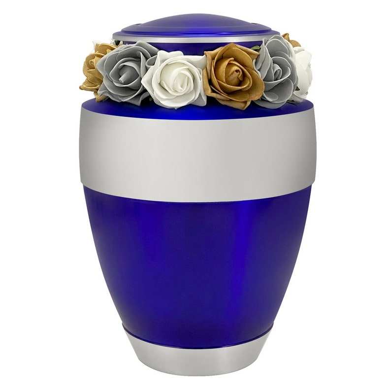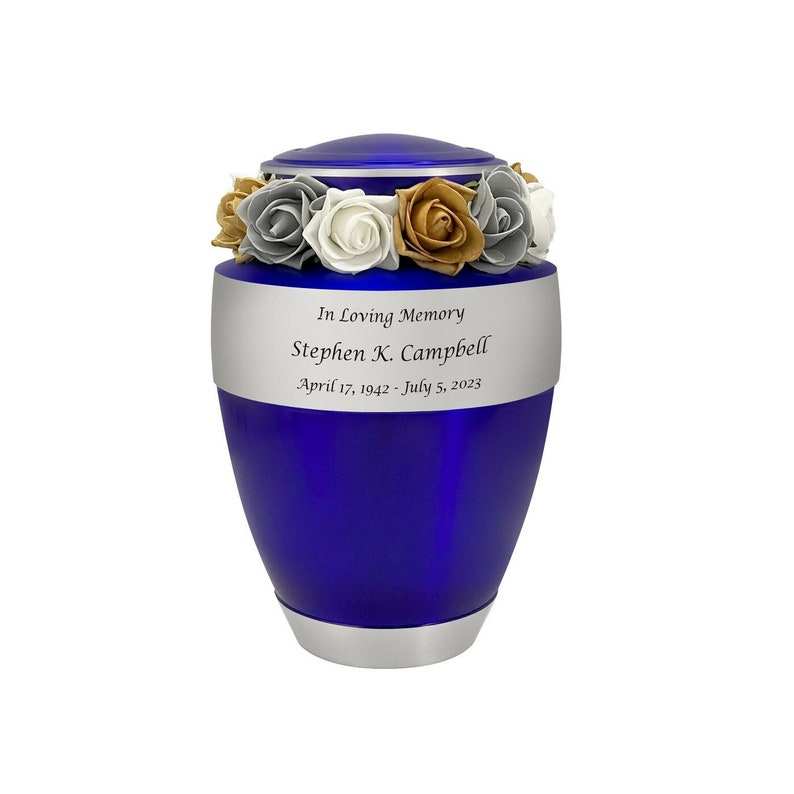 Navy Blue Pewter Cremation Adult Urn Tribute Wreath Option Custom Engraving Adult Sized