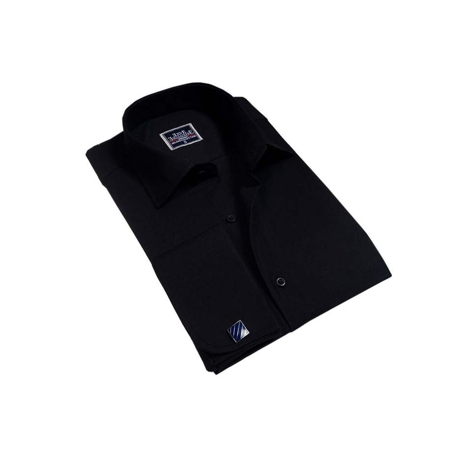 เสื้อเชิ้ตมีกระดุมสองแขนสีกรมท่าแบบเรียบง่ายสไตล์ฝรั่งเศสคลาสสิก