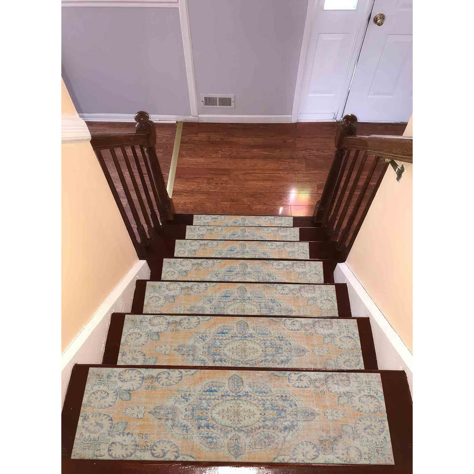พรมพิมพ์ลายสีน้ำเงินกรมท่า: โทนสีอ่อน ทันสมัย คลาสสิก ตกแต่งบ้าน ซักได้ ผ้ากอบเลน