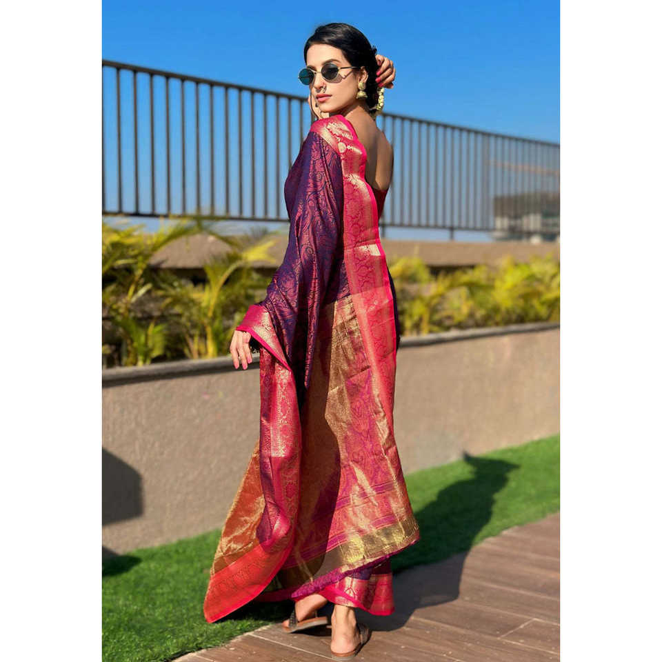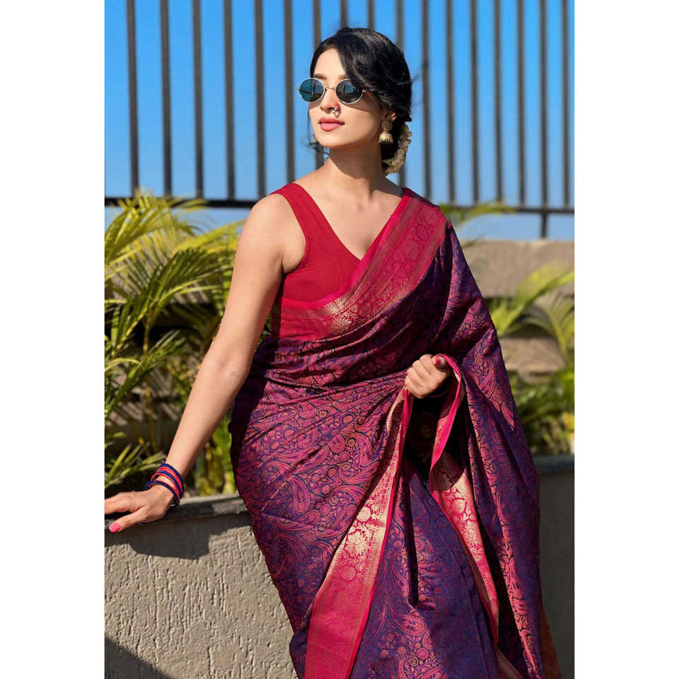 ผ้าซิลค์แคชเมียร์สีน้ำเงินกรมท่าเนื้อนุ่ม ทอลายซารีแบบตัดกันอย่างหรูหรา สำหรับงานกลางคืน ผ้าทอคุณภาพสูง ยืดหยุ่น แห้งเร็ว น้ำหนัก 0.6 กรัม