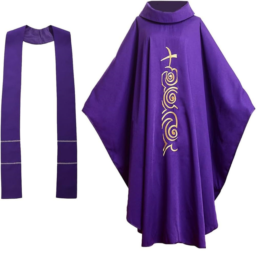 ชุดคลุมนักบวชสีน้ำเงินกรมท่าแบบเวสลีย์ ขายส่ง ชุดยูนิฟอร์มโบสถ์พร้อมครอสปักลายแกะพระเจ้า ชุดพิธีมิสซาแบบสั่งทำพิเศษ