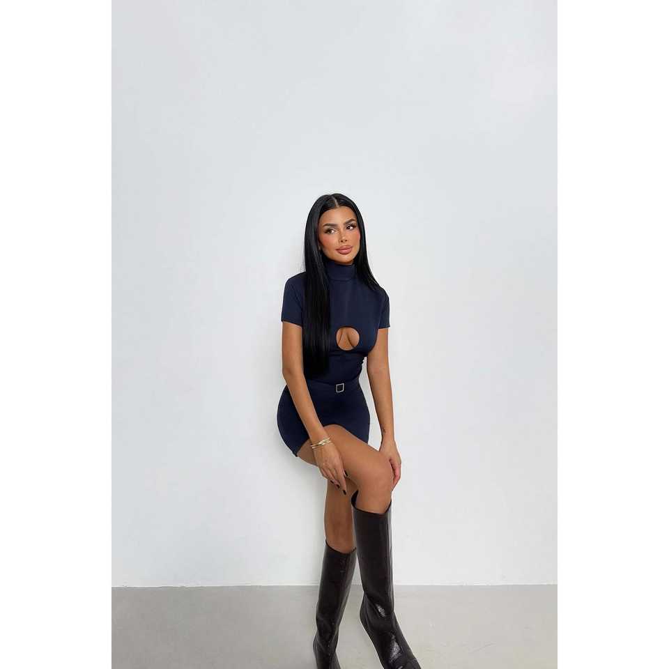 ชุดเดรสคลับสีกรมท่าพร้อมเข็มขัด สง่างามและมีสไตล์