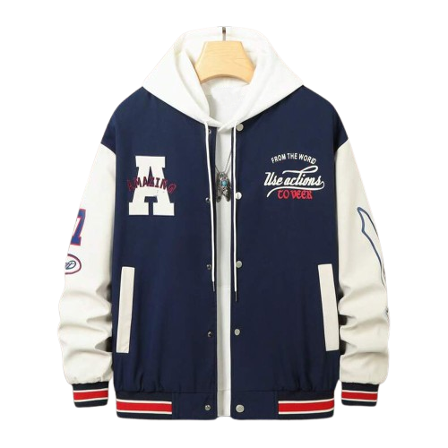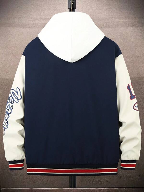 แจ็คเก็ตเบสบอลวิทยาลัยนาวีสำหรับผู้ชายเสื้อนอกมีฮู้ดผ้าขนแกะปักลายแนวสตรีทแฟชั่นสำหรับฤดูหนาว