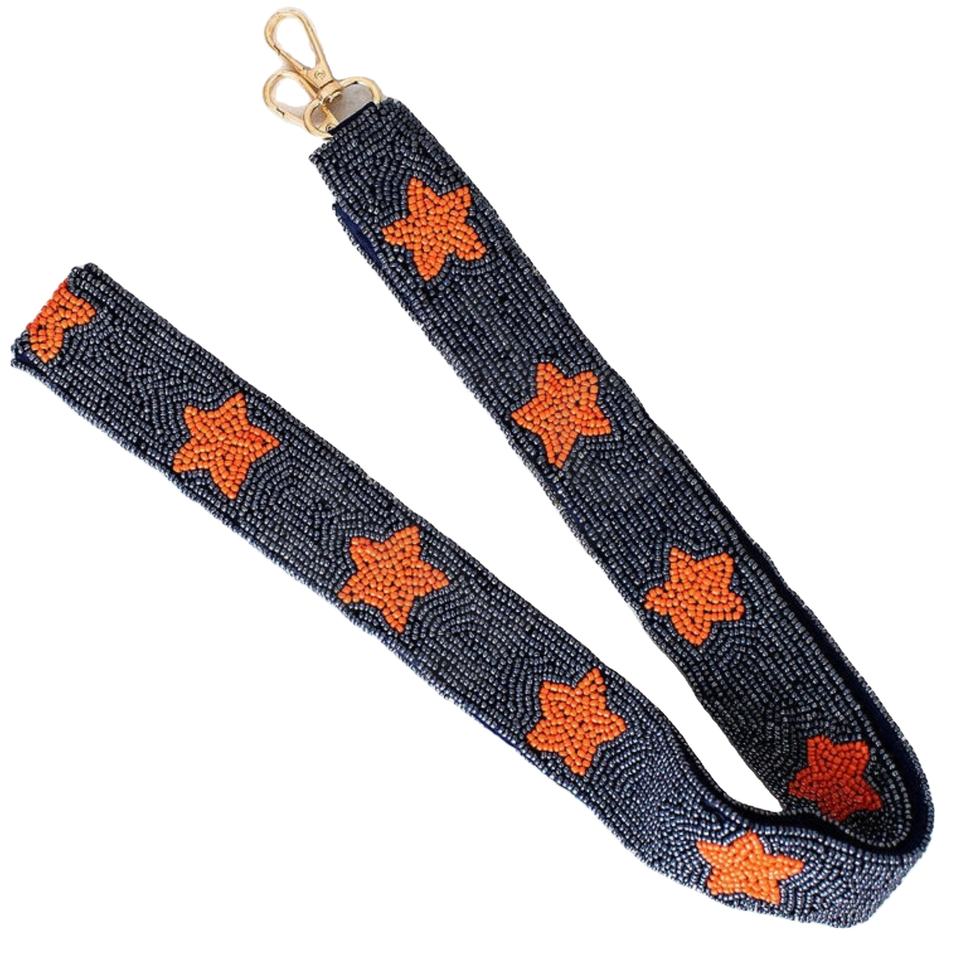 Navy Embroidered Cotton Purse Strap with Orange Stars Handcrafted Adjustable Beaded Design for Bags Game Days & Everyday Use