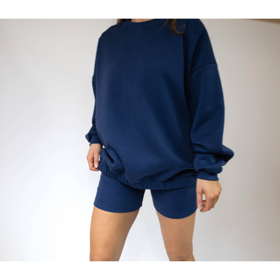 กางเกงขาสั้นปั่นจักรยานเอวสูงสีกรมท่า