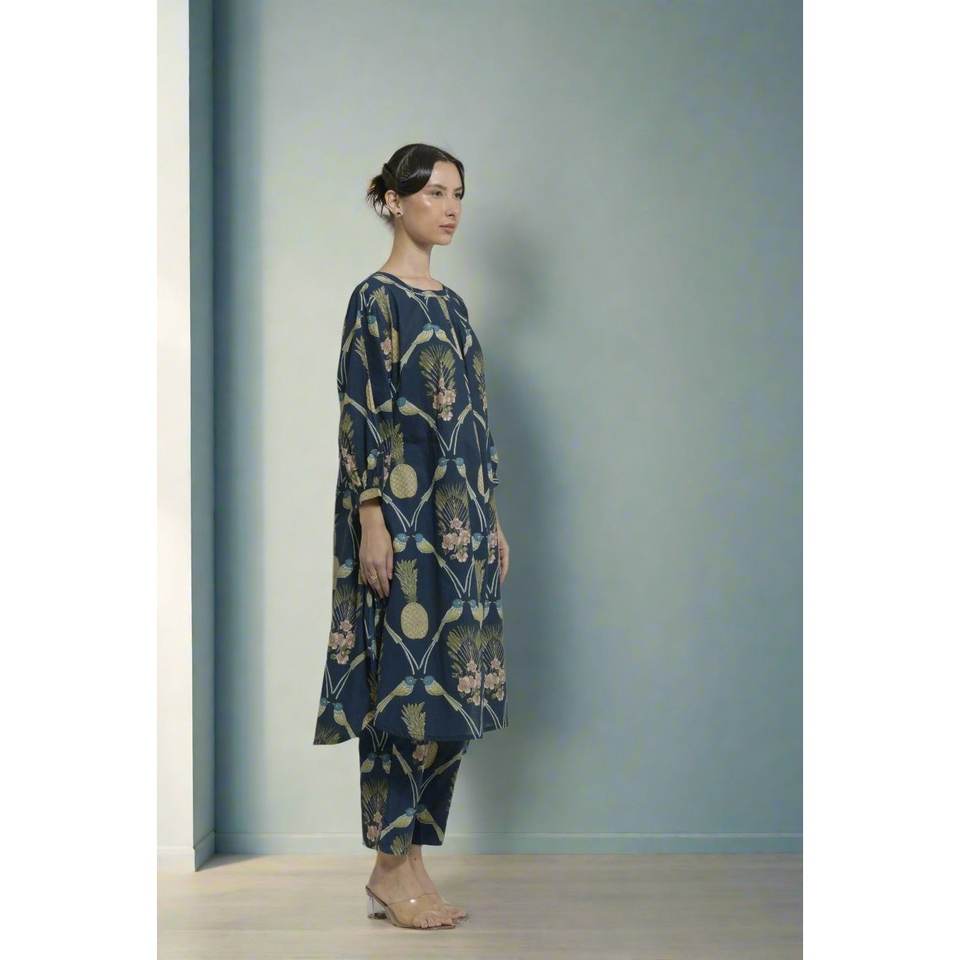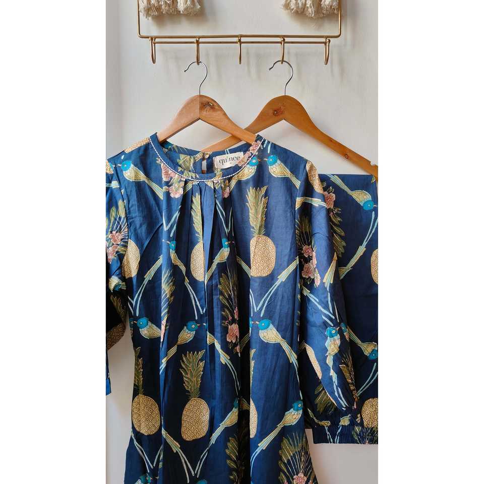 ชุดคุรตะผู้หญิงลายนกคู่รักสีกรมท่าขายดี