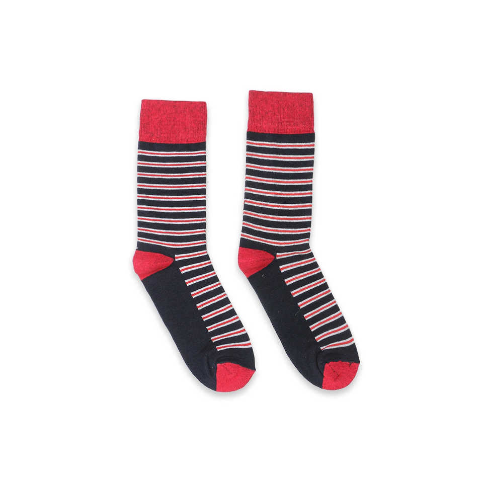 ถุงเท้ายาวลายทางสีน้ำเงินเข้มของผู้ชายดีไซน์ผ้าแจ็คการ์ดกันลื่นพื้นแบบใช้แล้วทิ้งสำหรับใส่ทุกวันฤดูหนาว