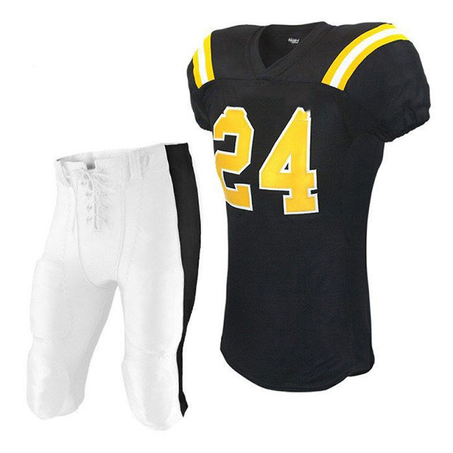ชุดอเมริกันฟุตบอลสีส้มกรมท่า เสื้อเจอร์ซีย์ตาข่ายคอวีสั้น หมายเลข 48 แถบข้างตัดสี แผงตัดต่อเข้าชุดกัน บุเสริมอย่างดี สำหรับทุกเพศ