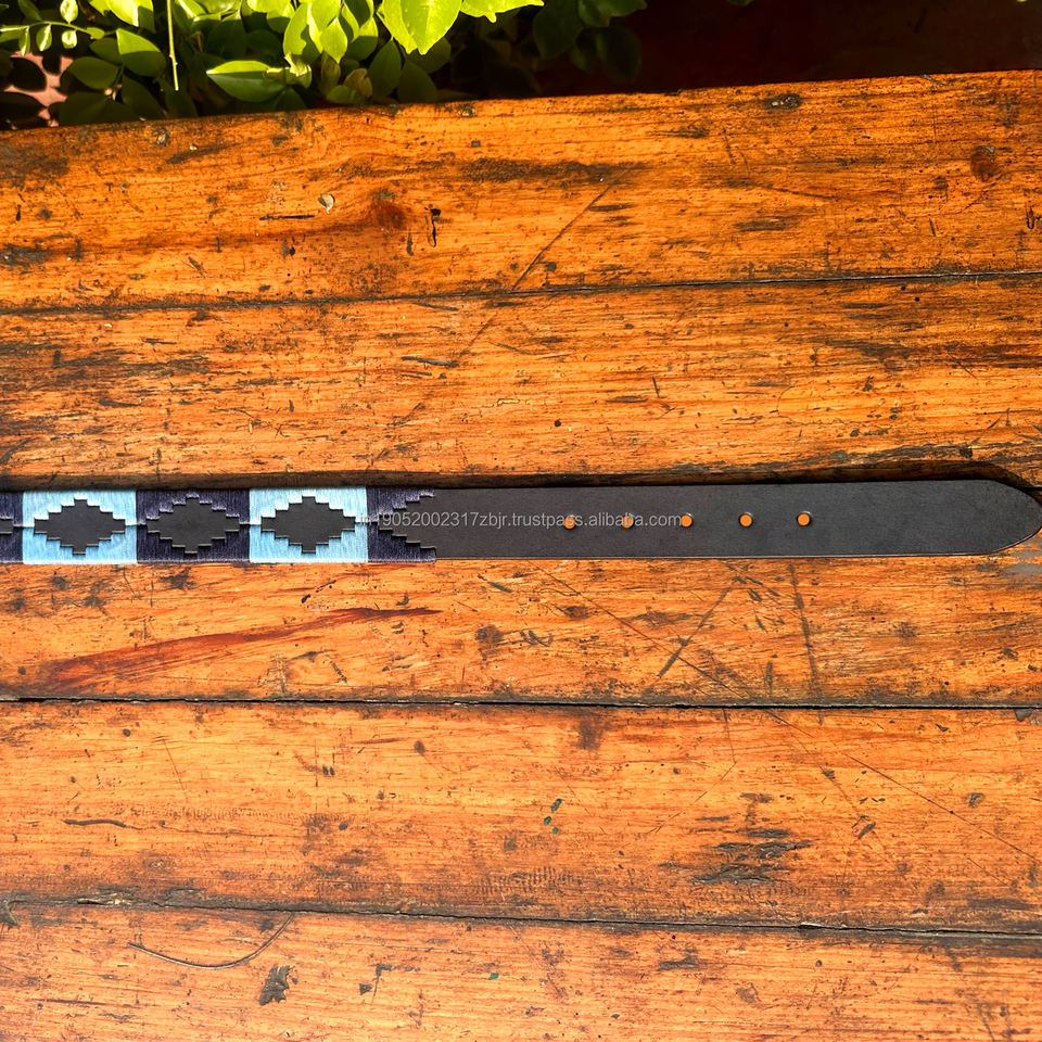 Sky Blue เข็มขัดโปโลหนังควายสำหรับวัยรุ่น, เข็มขัด100% ด้วยขี้ผึ้งหัวเข็มขัดทองเหลืองแข็งปรับความยาวได้