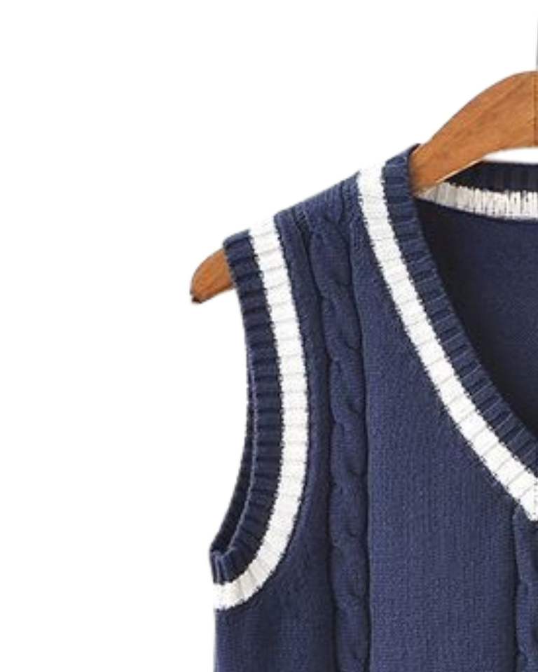 เสื้อกั๊กไหมพรมถักลายเคเบิ้ลสีขาวกรมท่า คอวีลายทาง เนื้อผ้านุ่ม อุ่นสบาย แฟชั่นผู้ชาย สไตล์ลำลอง สำหรับฤดูหนาว