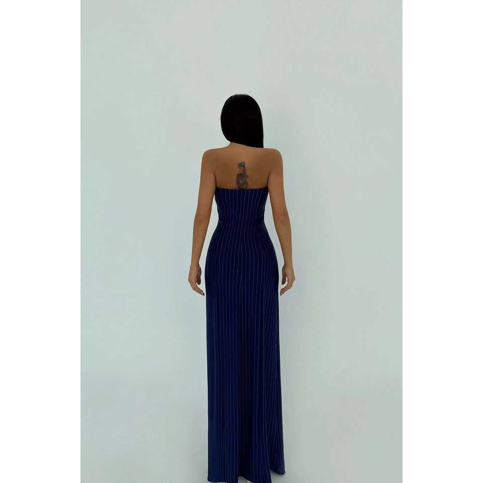 ชุดเดรสปาร์ตี้ทรงเอไลน์ คอสูง ผ้าซาตินโพลีเอสเตอร์ ไซส์ XS สีกรมท่า สายเดี่ยว แต่งระบายจับจีบ สไตล์เรียบง่าย ความยาวระดับเข่า สำหรับฤดูร้อน