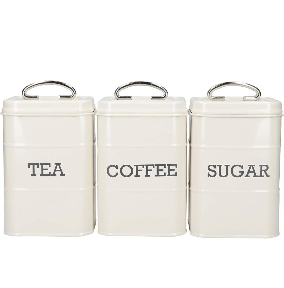 Navy blue metal kitchen canister set flour sugar tea coffee storage containers with lids retro style airtight pantry organizer