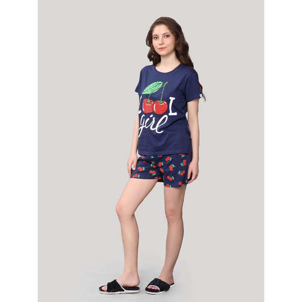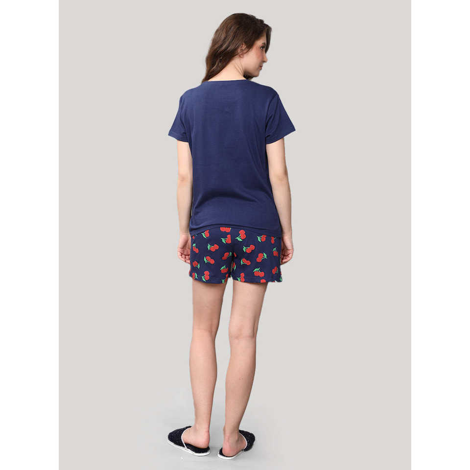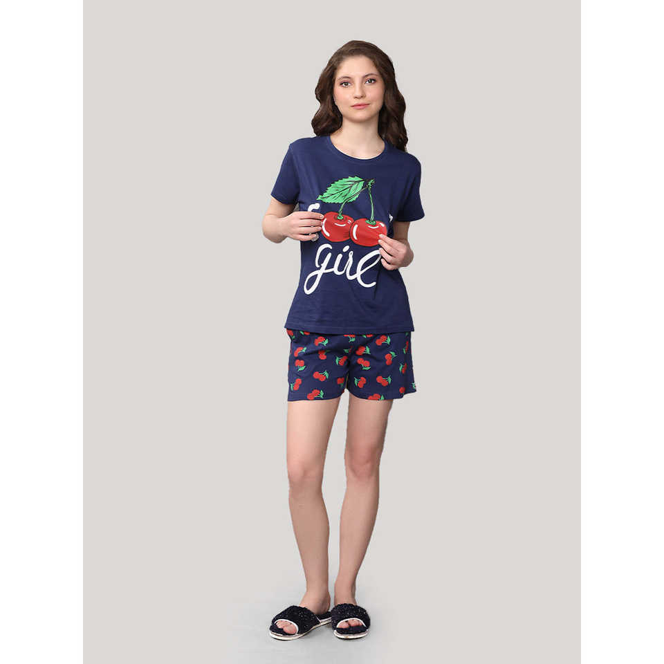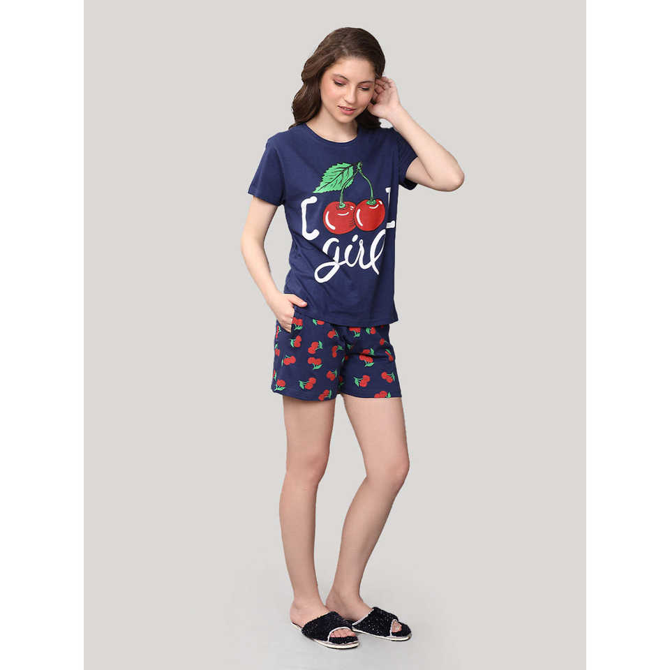 ชุดกางเกงขาสั้นสีน้ำเงินกรมท่า ผ้าฝ้าย 100% เนื้อผ้านิตเนื้อนุ่ม