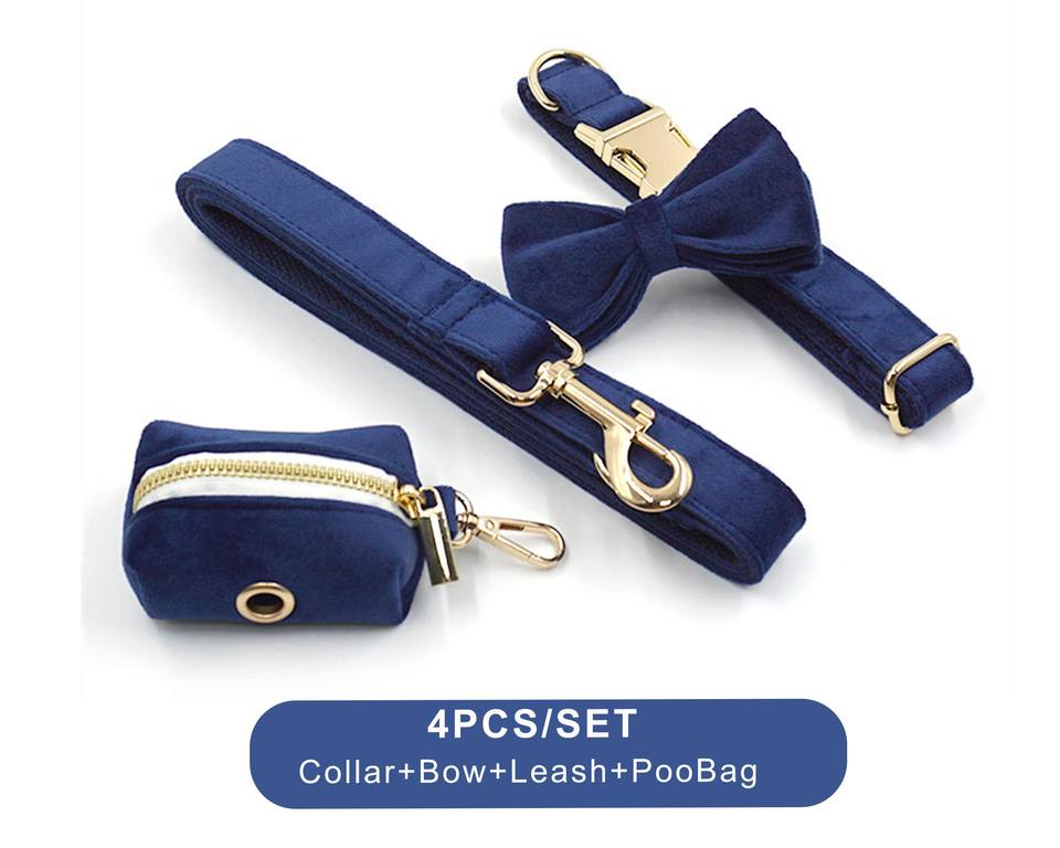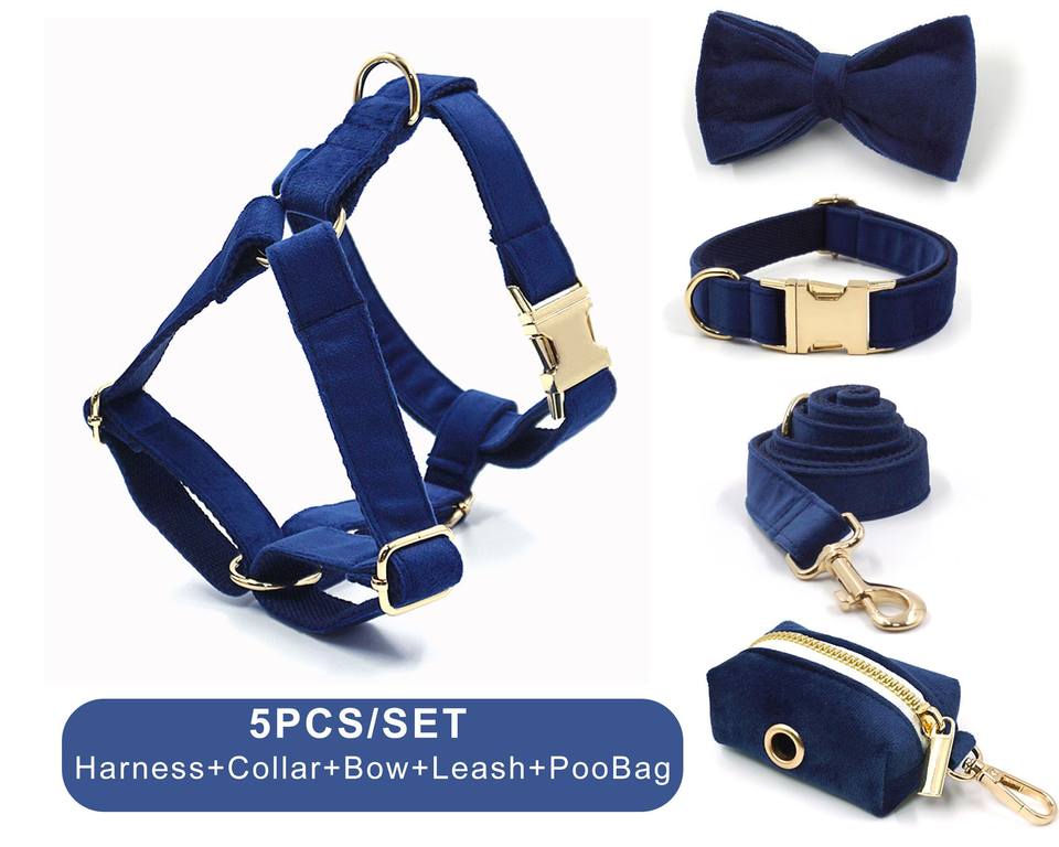 ชุดสายจูงสุนัขและสายจูง Veet BLUE ชุดสายจูงสุนัขแบบปรับแต่งได้ + ปลอกคอ + หูกระต่าย + ที่ใส่กระเป๋าไม่มีสายรัดสำหรับงานแต่งงาน