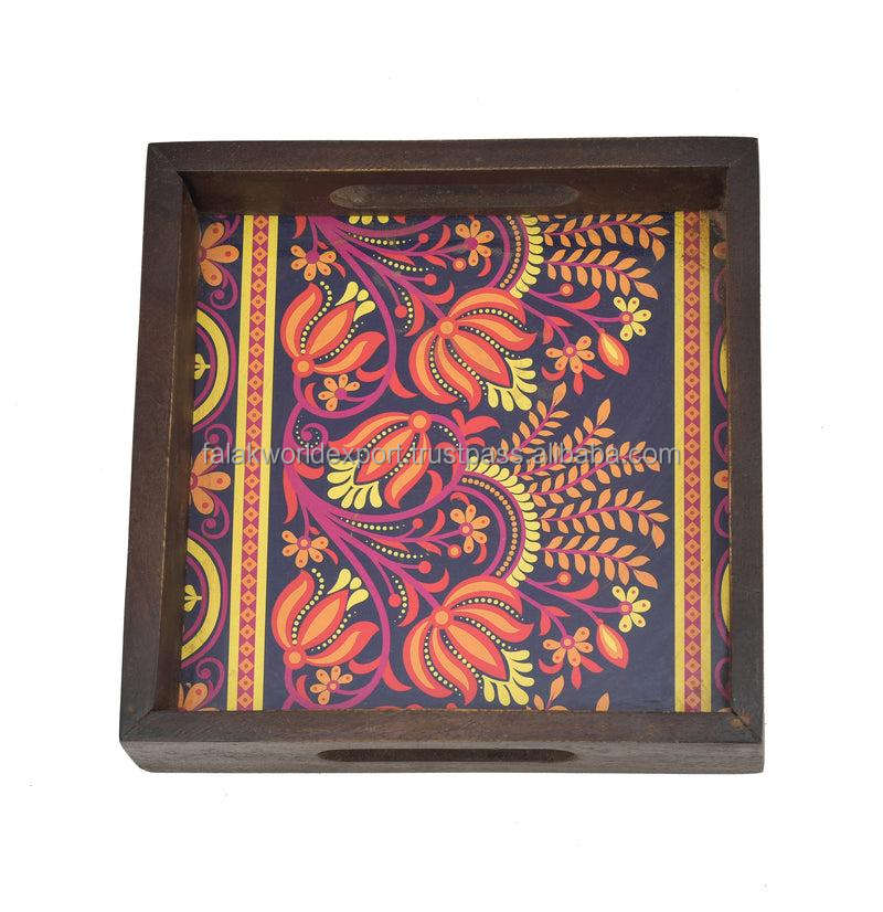 Nawe arrive ถาดสี่เหลี่ยมลายไม้เคลือบเงา, ถาดเสิร์ฟพร้อมเปลือกทำด้วยมือ