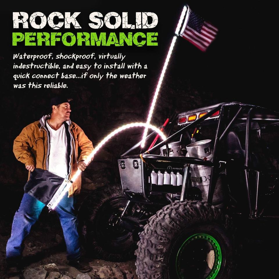 เสาอากาศแบบยืดหยุ่น Nawind 5050 RGB LED พร้อมไฟ LED แบบกันน้ำ IP67 ควบคุมผ่านแอพ สภาพใหม่ อะไหล่สำหรับรถ ATV/UTV ออฟโรด