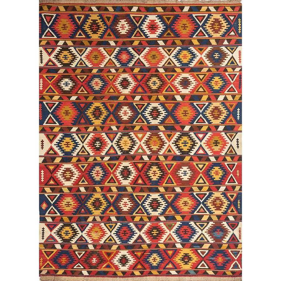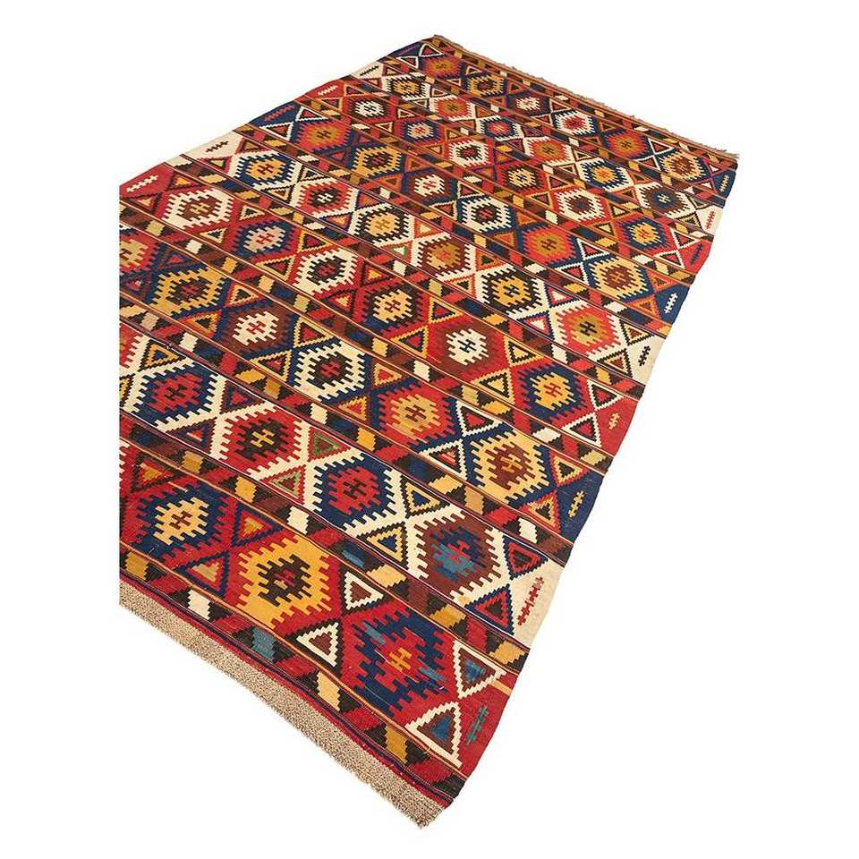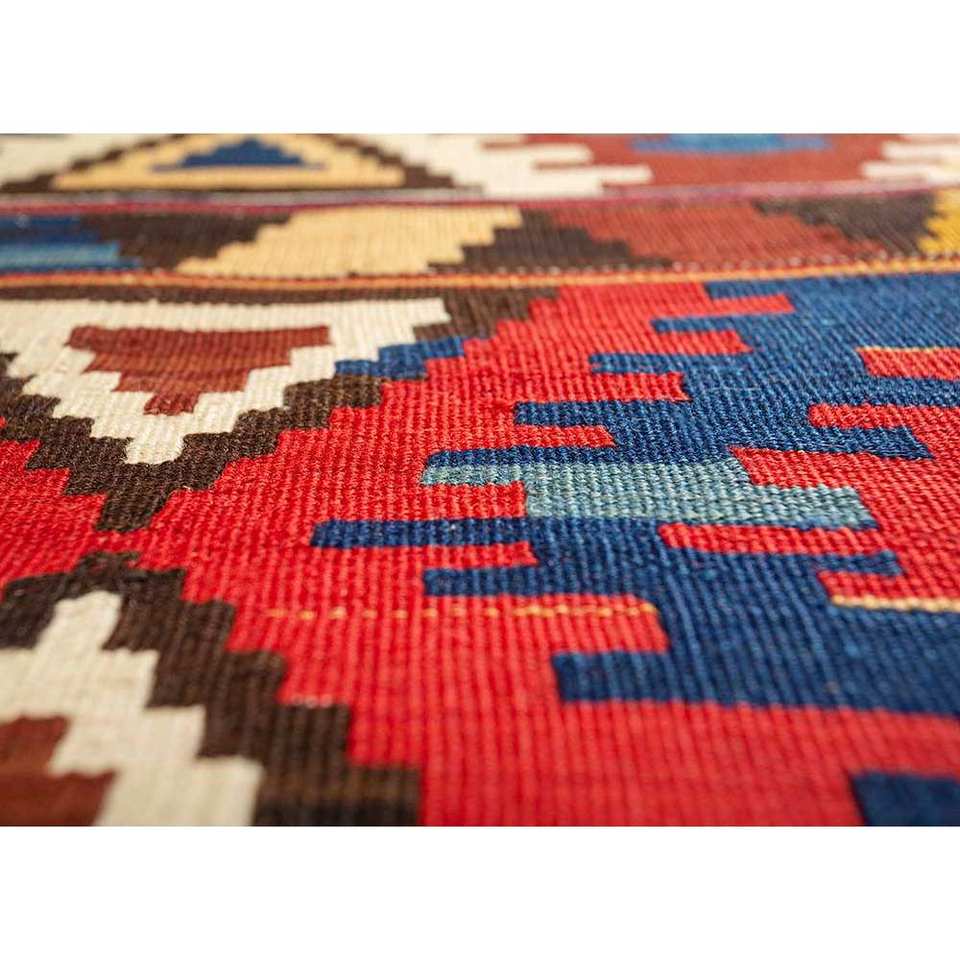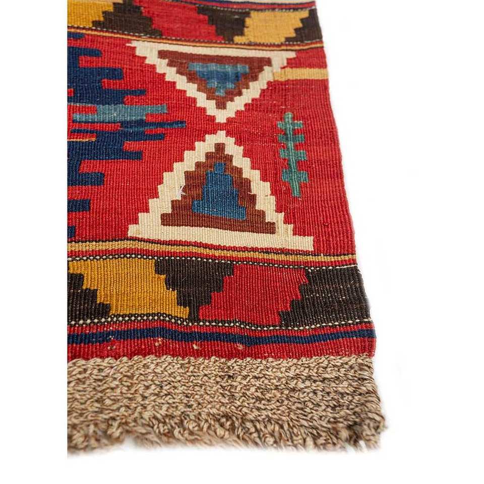 นาเยาบพรมลายเรขาคณิต พรมขนสัตว์ทอแบน สีแดงและสีส้ม พรม 3 มิติสำหรับตกแต่งห้องนั่งเล่นในบ้าน PAEM-814