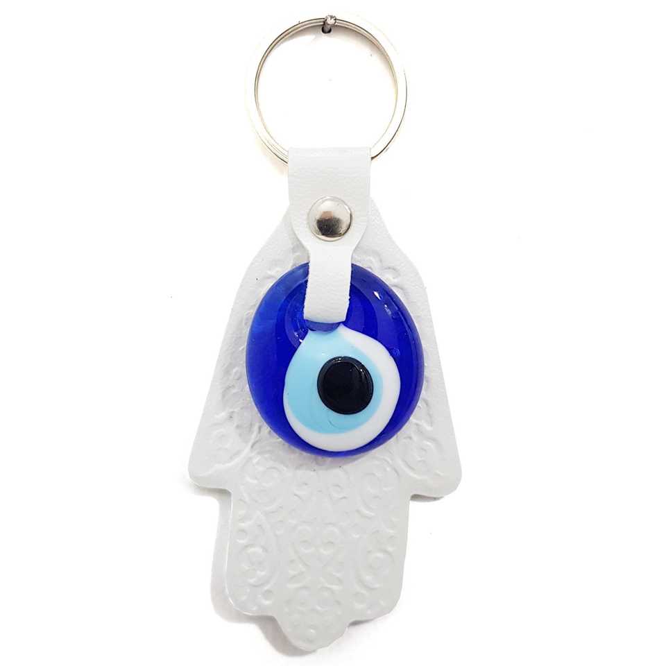 Nazar boncuklu dervi fatıma'nın anahtarlık Hamsa anahtarlık beyaz พวงกุญแจหนัง