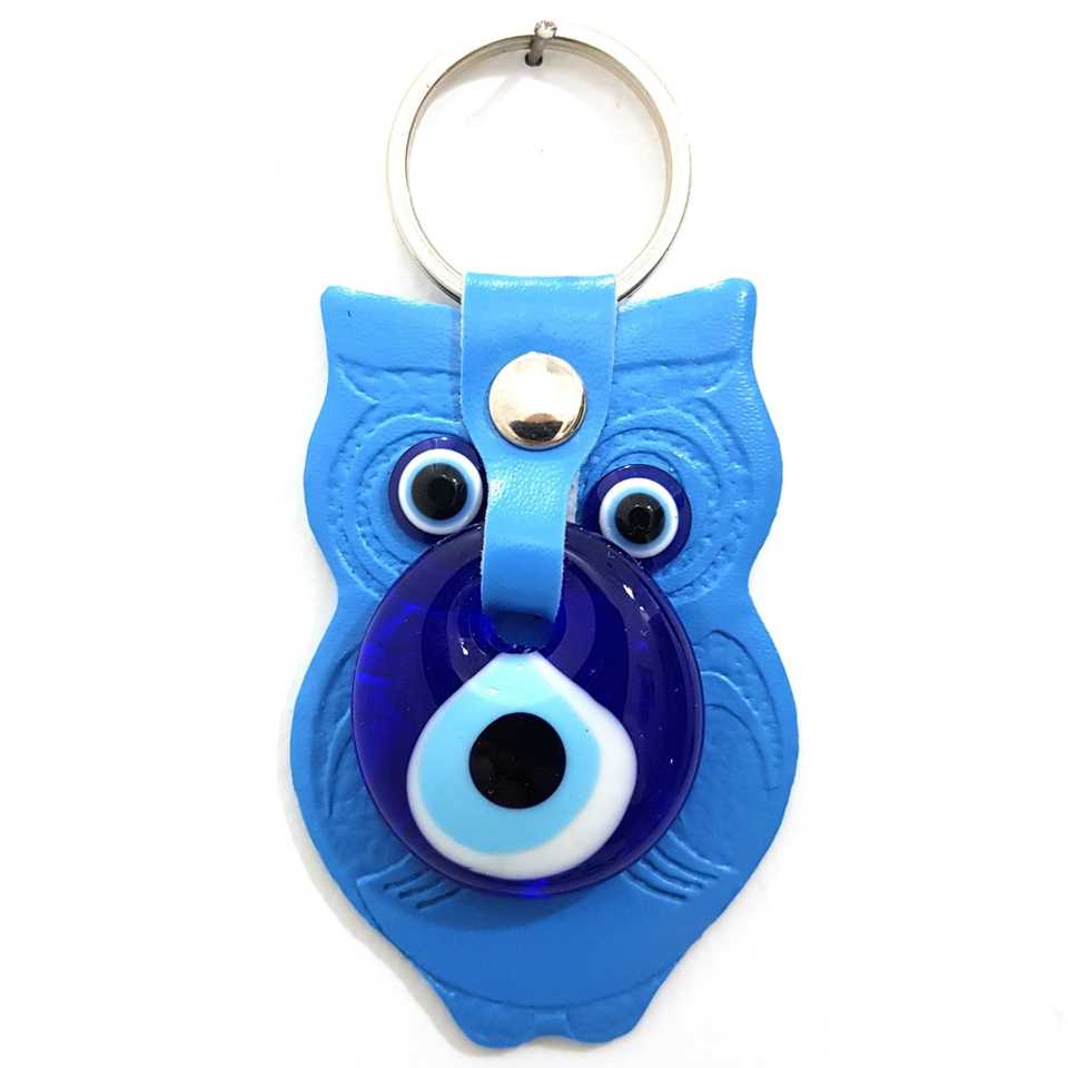 Nazar Boncuklu Mavi Deri Baykuş Anahtarlık Premium Glass Key Chains