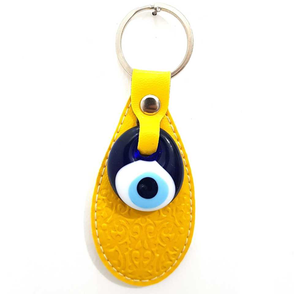 Nazar Boncuklu Oval Leather Key Chain Sarı Anahtarlık