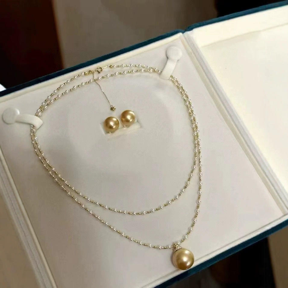 สร้อยคอมุกแท้สีขาวทองธรรมชาติ ขนาด 9-11 มม. รูปทรงเกือบสมบูรณ์แบบ ดีไซน์โซ่เสื้อสเวตเตอร์ โดดเด่นสะดุดตา พร้อมตำหนิเล็กน้อยเพื่อให้ผิวสัมผัสเรียบเนียนดุจผิวเด็ก