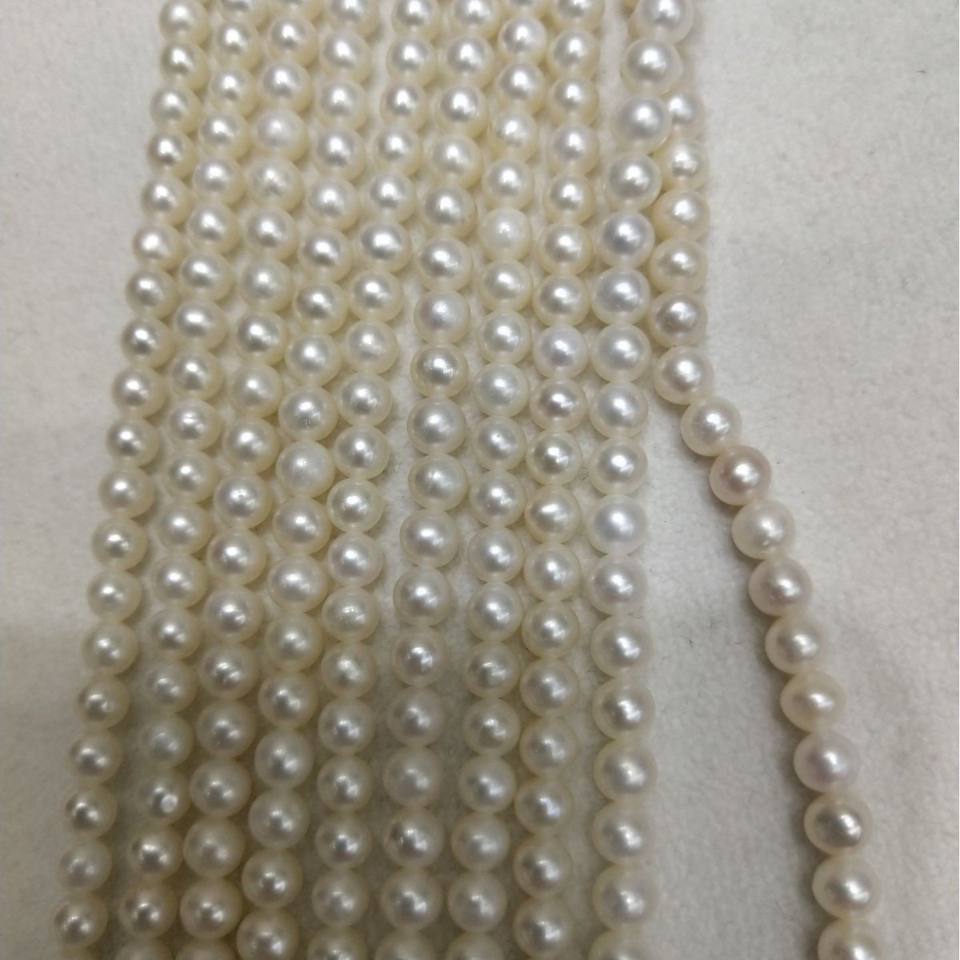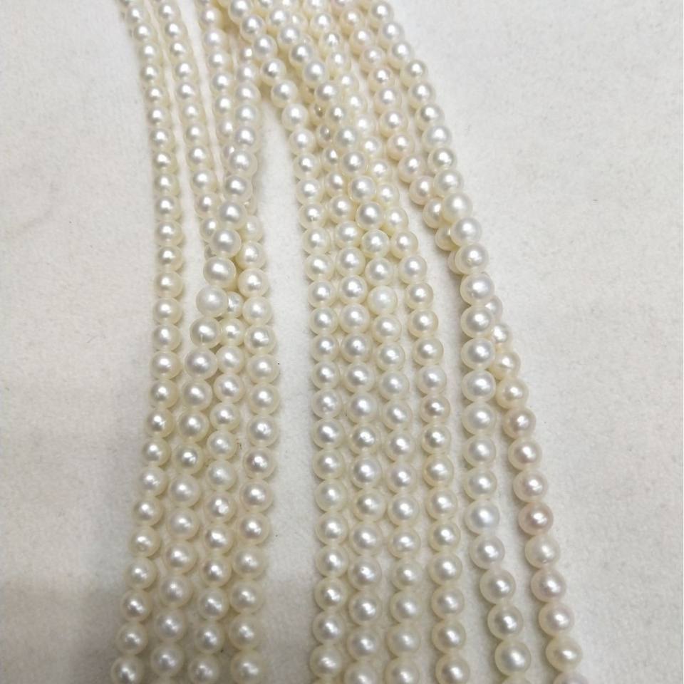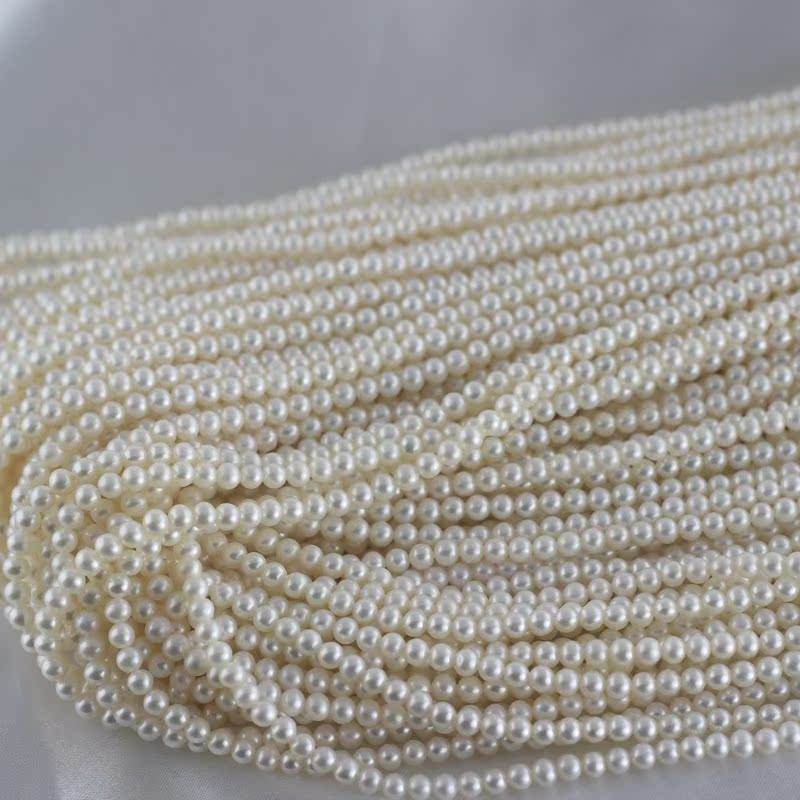 สร้อยคอมุกน้ำจืดทรงกลมเกือบสมบูรณ์แบบ เม็ดเล็ก 3-4 มม. ผลิตภัณฑ์กึ่งสำเร็จรูป