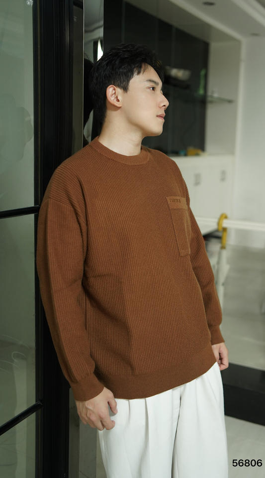เสื้อสเวตเตอร์ถักลายริบคอปกสำหรับผู้ชาย ทรงหลวม ดีไซน์กระเป๋าปะติด สวมใส่สบายๆ ในชีวิตประจำวัน เหมาะสำหรับการเดินทางไปทำงาน ให้ความอบอุ่นและนุ่มสบาย