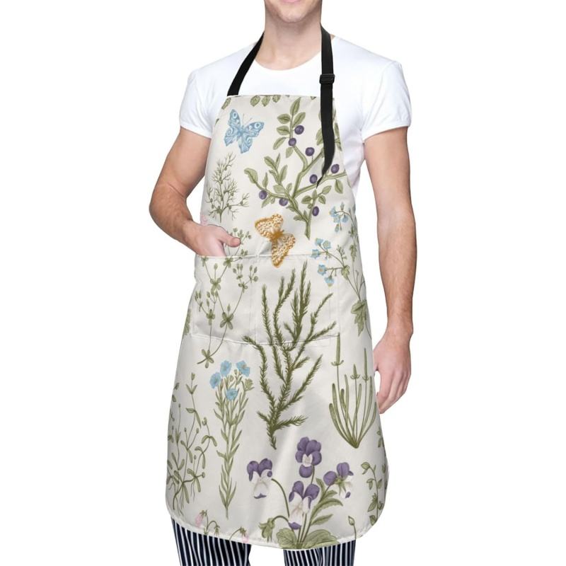 ผ้ากันเปื้อนทำอาหารฝ้าย100% มีสายคล้องคอสำหรับผู้หญิงผู้ชายมีกระเป๋ามีไอคอนผ้าอ็อกซ์ฟอร์ดทำจากขนมปังข้าวสาลีพร้อมปรับขนาดได้
