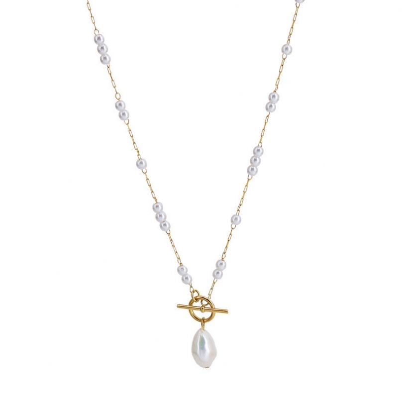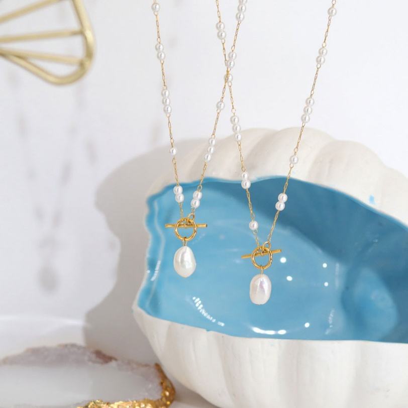 สร้อยคอผู้หญิง ผลิตตามสั่ง โลโก้สั่งทำได้ ไม่ลอก ไม่ดำ กันน้ำ สแตนเลสชุบทอง 18k ประดับมุก OT