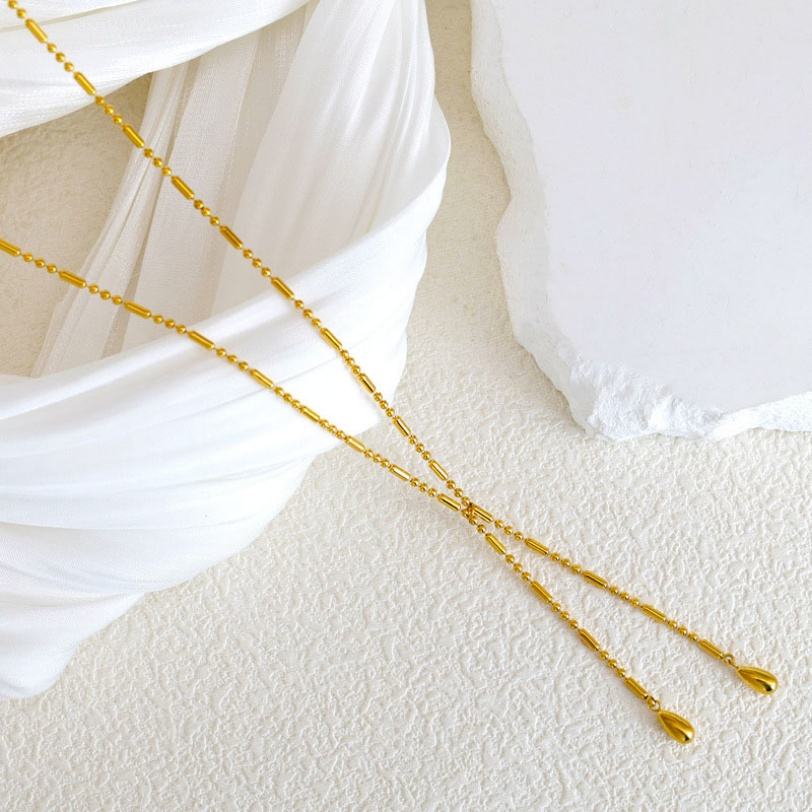 สร้อยคอผู้หญิง สแตนเลสชุบทอง 18k รูปทรงหยดน้ำ กันน้ำ ไม่หมอง พร้อมสลักโลโก้ตามสั่ง