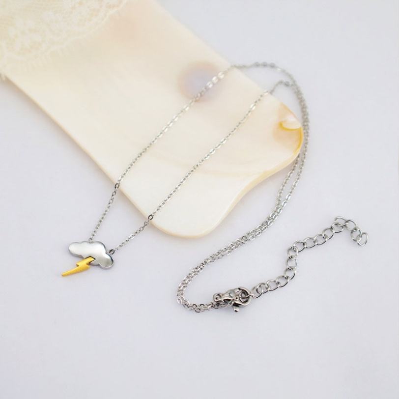 สร้อยคอผู้หญิง ลายเมฆสายฟ้า ชุบทอง 18k สแตนเลสสตีลกันน้ำ ไม่หมอง พร้อมสลักโลโก้ตามสั่ง