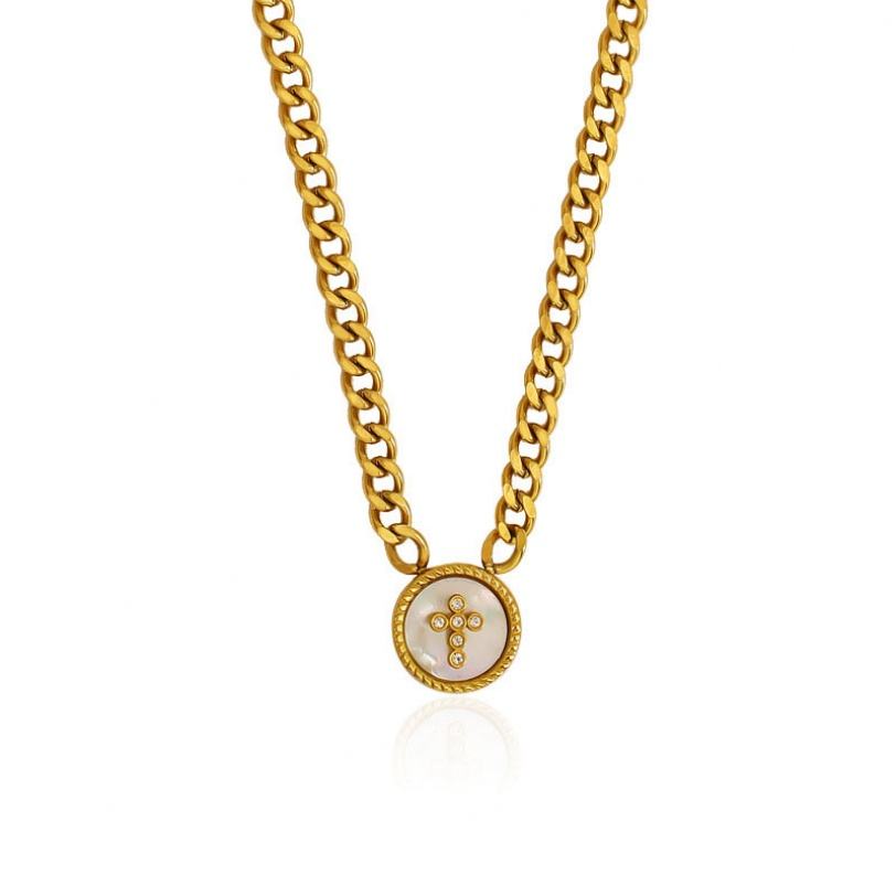 สร้อยคอผู้หญิง สแตนเลสสตีลชุบทอง 18k รูปเปลือกหอย หัวใจ และไม้กางเขน กันน้ำ ไม่หมอง พร้อมสลักโลโก้ตามสั่ง