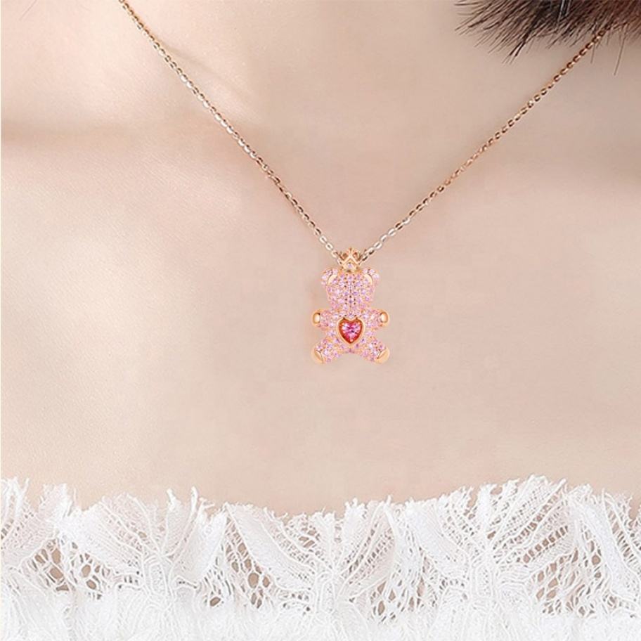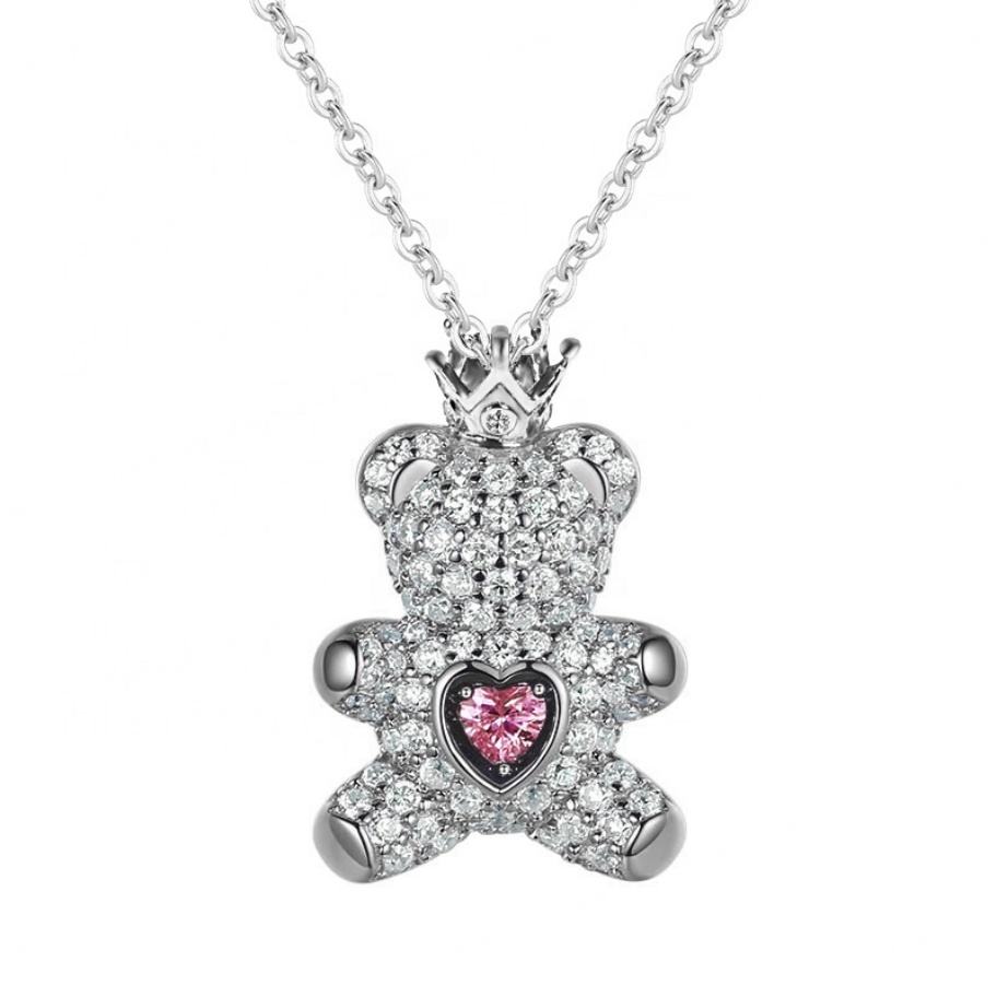 สร้อยคอหมีเท็ดดี้พร้อมมงกุฎ ขายส่ง เงินแท้ 925 100% สร้อยคอแบบโชคเกอร์ เครื่องประดับน่ารัก จี้เพชร CZ ของขวัญวันเกิด
