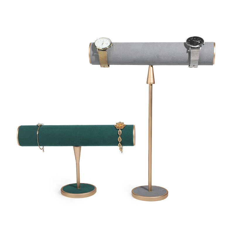 สร้อยคอไม้ฐานโต๊ะเคาน์เตอร์บนโต๊ะสร้อยข้อมือสีม่วงหมุนยืนแสดงเครื่องประดับสีชมพูสำหรับร้านขายเครื่องประดับ
