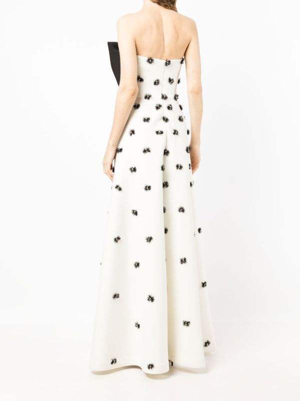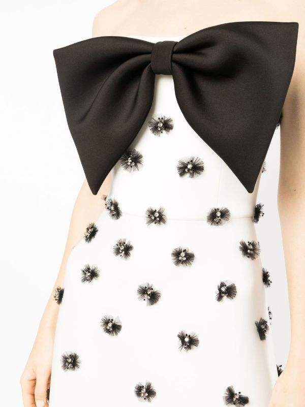 เดรสราตรีป้องกันไฟฟ้าสถิตย์ประดับโบว์ไม่มีสายสีดำปักลายสำหรับงานปาร์ตี้