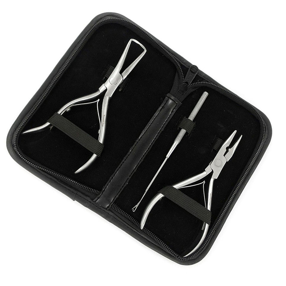 ชุดคีมต่อผมจมูกแบบเข็มชุด3ชิ้นชุดคีมทำผมด้ามขัดเงาชุดคีมหนีบผมสแตนเลส