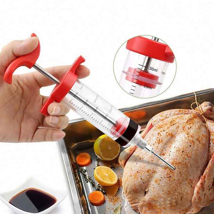 ชุดเข็มฉีดยาสำหรับปรุงรสเนื้อย่างบาร์บีคิว พร้อมอุปกรณ์เสริมสำหรับฉีดซอสและน้ำหมัก
