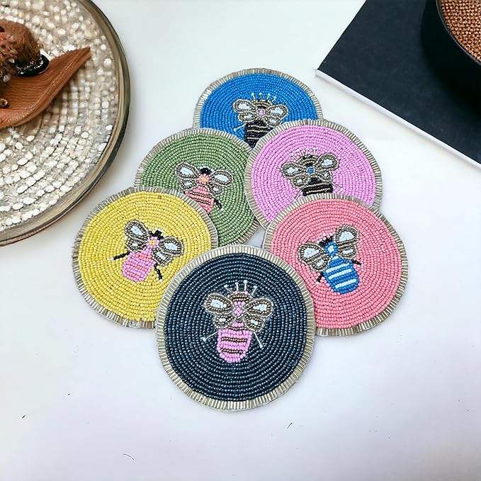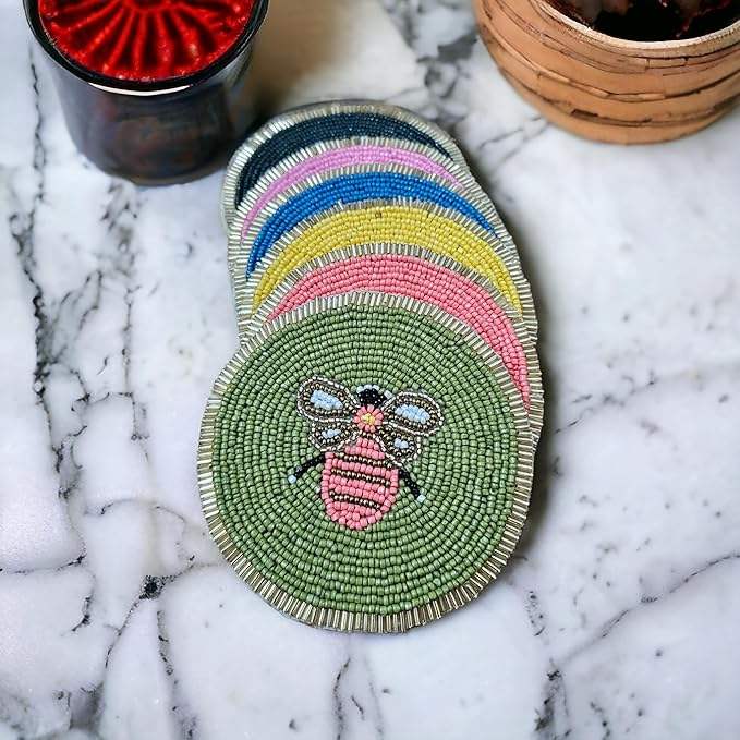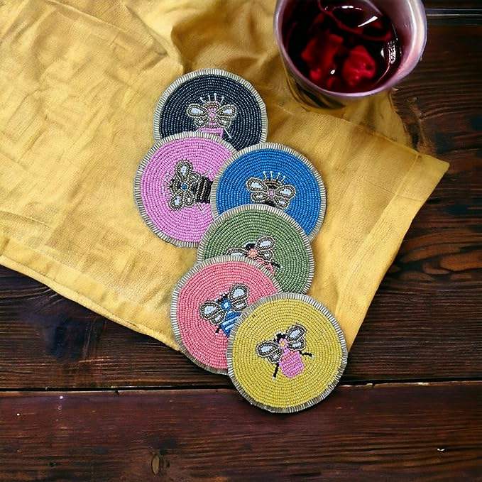 แผ่นรองแก้วถักลายด้วยลูกปัดแก้วสำหรับตกแต่งโต๊ะและห้องครัวแผ่นปูตกแต่งบ้าน