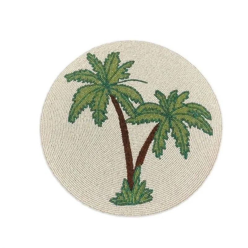 แผ่นรองจานสำหรับรับประทานอาหารที่ทำด้วยมืองานปักลายศิลปะแผ่นรองจานประดับลูกปัดสำหรับการรับประทานอาหารสุดหรู