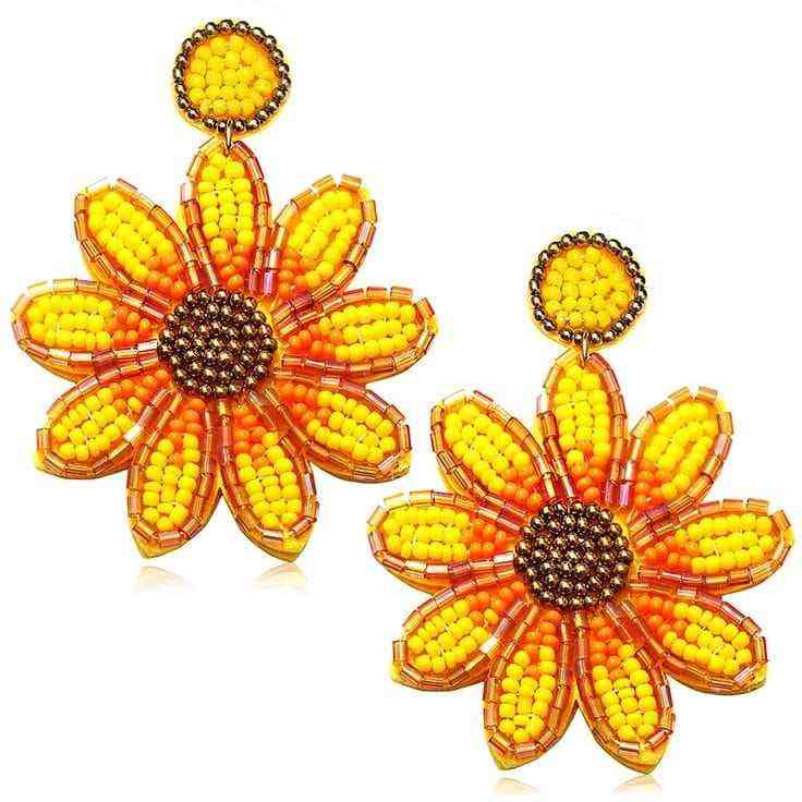 ต่างหูประดับลูกปัดลายดอกทานตะวันสีเหลืองสำหรับผู้หญิง ต่างหูแบบห้อยประดับลูกปัด งานฝีมือเย็บปักถักร้อย